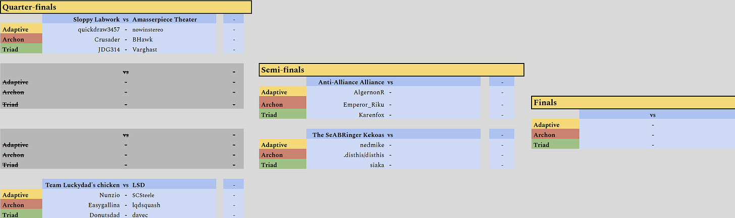 Season 4 of the KeyForge Team League has reached playoffs, and the playoff bracket is below.