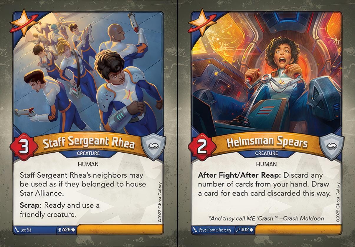 A: When resolving Helmsman Spears’ After Reap: ability, you would need to set the magnitude of the “any number” then proceed to resolve the instructions from there. For example, if you reaped with Helmsman Spears and chose a magnitude of 6, then discard Staff Sergeant Rhea and resolve its Scrap: ability to ready and reap with Helmsman Spears a second time, you would then set the magnitude for the second instance of Helmsman Spears’ After Reap: ability. If you choose 6 again, then you would discard the remaining 6 cards in your hand, then draw 6 cards for the second instance of Helmsman Spears’ After Reap: ability. With the second instance completely resolved, you would return to resolving the first instance, discarding a further 5 cards, then draw 6 cards to complete the resolution of the first instance.