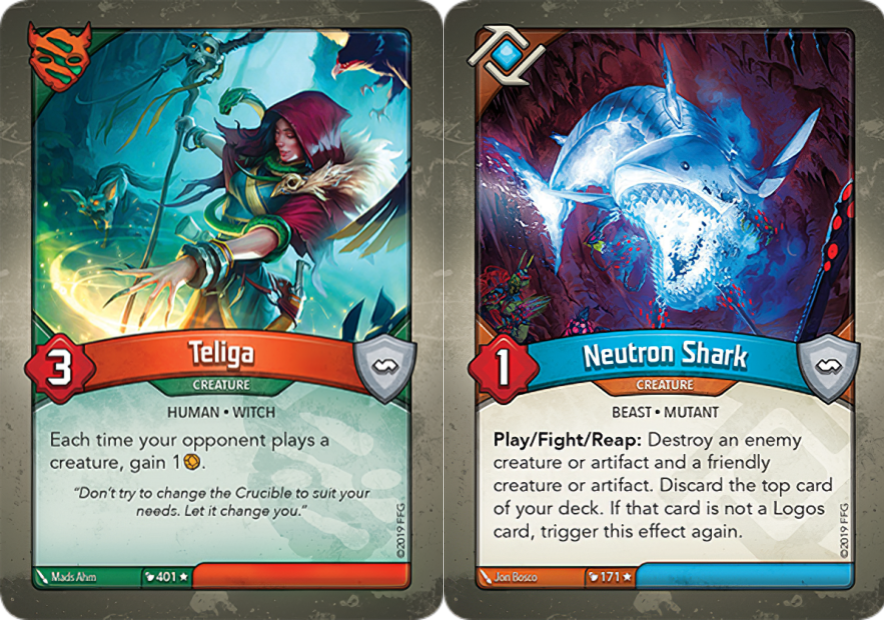 A: Yes. Effects that occur “each time” occur at the same timing point as effects that use the term “after.” This means that Neutron Shark and Teliga both resolve in the same timing window, the “after play” window. As such, the Active Player can choose to resolve Neutron Shark’s Play: ability and destroy Teliga before Teliga’s ability has a chance to resolve.